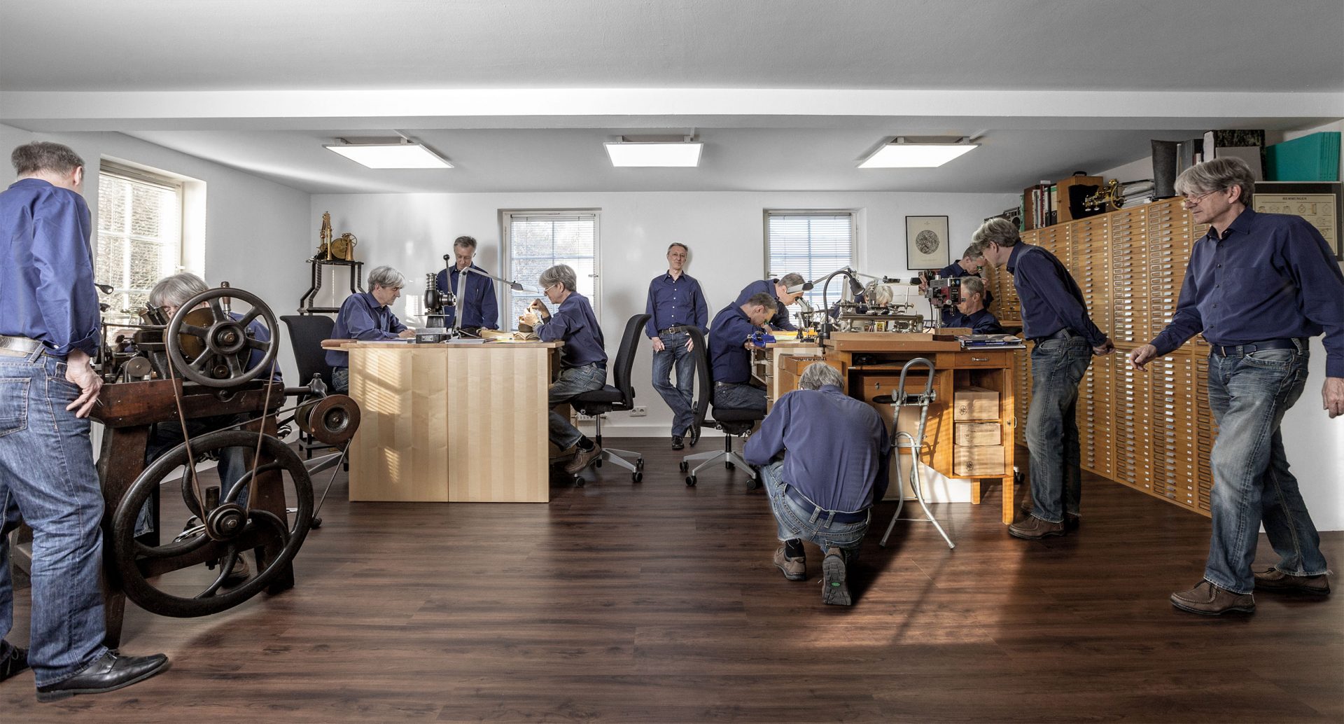 One of the most important watchmakers of all time, Abraham-Louis Breguet again stands as the inspiration for the frosted finish of our dials. Just like in the late eighteenth and early nineteenth centuries, the surfaces of our dials are treated with a combination of oxidation (open flame) and a special acid mix. The result is the silvery-white surface reminiscent of frost – which is where the name comes from.